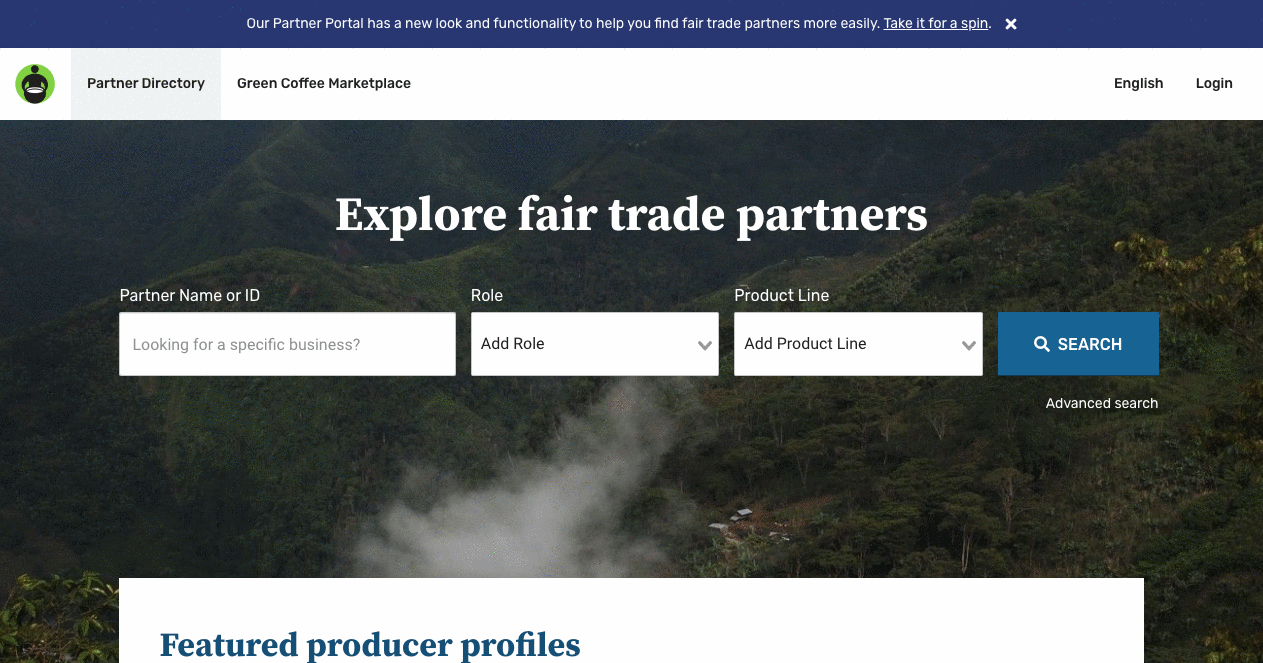 In July 2020, the Innovation team revamped the Partner Portal to expand beyond basic compliance reporting functionality and released new features to increase sales opportunities, incentivize product marketing collaborations, and foster relationship building opportunities between coffee producers and buyers. We launched a new landing page, searchable directory of partner profiles, digital marketplace and supply chain dashboards to our coffee supply chains that span across North America, Latin America, Southeast Asia and Africa.