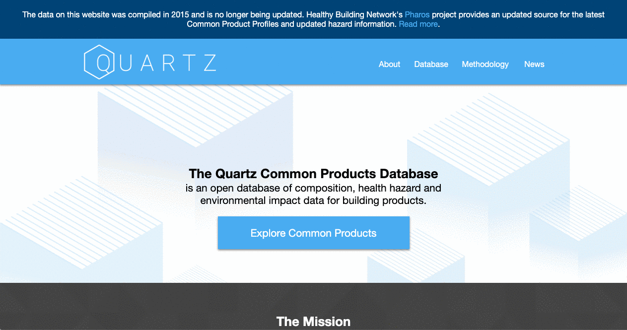 Quartz was released in 2015 as a free and public resource for AEC design professionals and was also incorporated into Flux.io’s design collaboration platform. The database included composition, LCA data, and health hazard information on 102 common building products used primarily in building cores, shells, and foundations such as ready mix-concrete, steel rebar, and insulation.